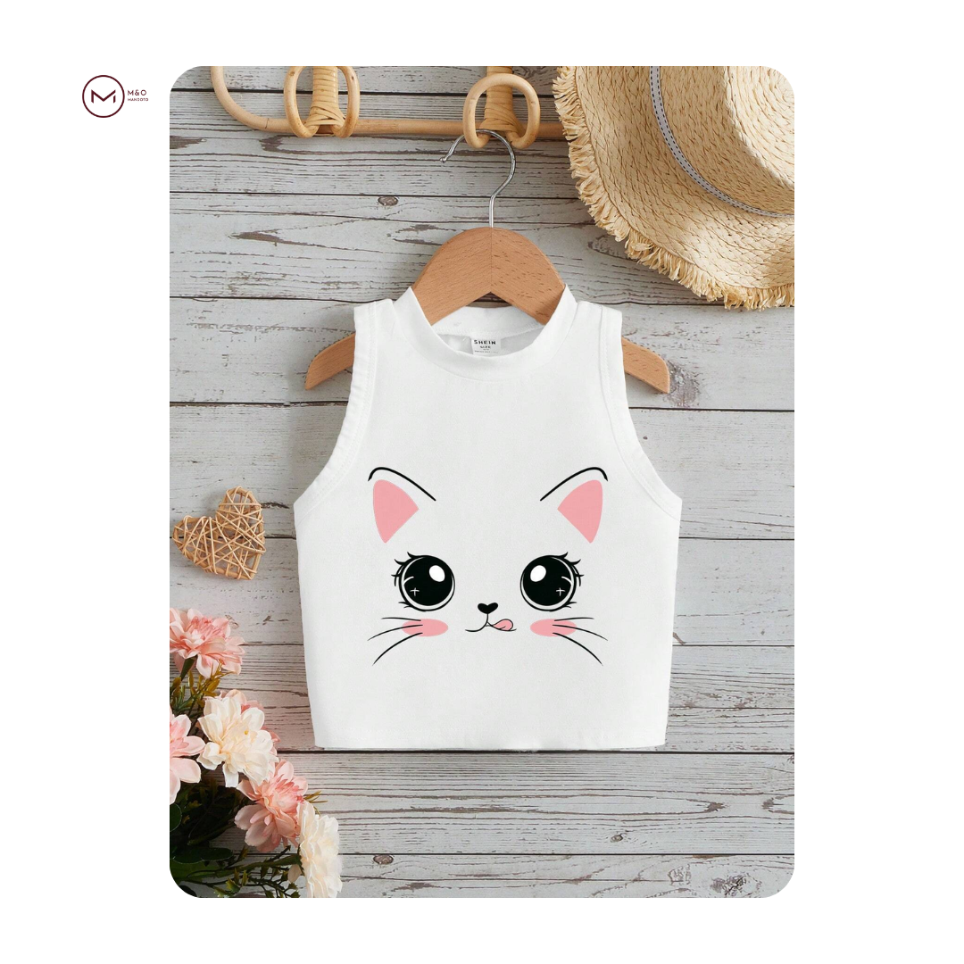 طرح کارتونی روی لباس جذابیت خاصی به آن بخشیده و باعث میشود که مورد توجه کودکان قرار گیرد. این تاپ را میتوان با شلوارک، شلوار جین یا دامن بهراحتی ست کرد و یک استایل تابستانی شیک و راحت ایجاد کرد.