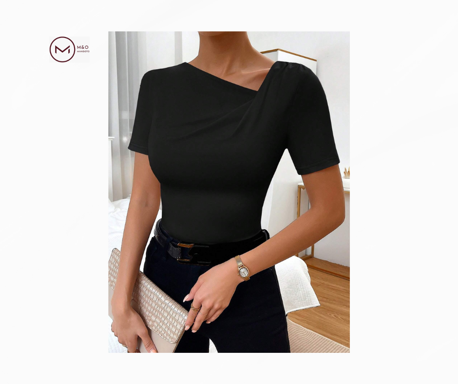 تیشرت بادیکان با یقه نامتقارن، از جنس پارچهای با کیفیت بالا ساخته شده که بهخوبی روی بدن قرار میگیرد و استایلی شیک و جذاب ایجاد میکند. این تیشرت با طراحی خاص خود، مناسب برای استفاده در مهمانیها، دورهمیها و موقعیتهای غیررسمی است.