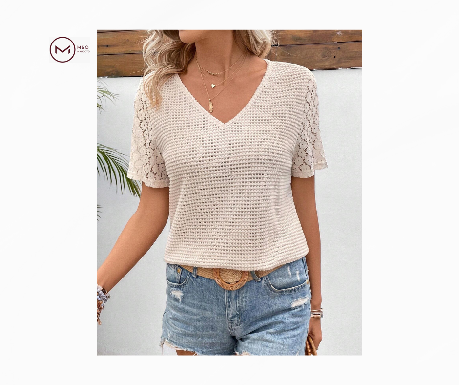 تیشرت زنانه از برند SHEIN Frenchy Back با طراحی یقه هفت و دکمههای جلویی، دارای تکهدوزی توری در قسمتهای مختلف است که به آن جلوهای شیک و زنانه میبخشد. بافتدار بودن پارچه، حس راحتی و خنکی را در روزهای گرم تابستان فراهم میکند. این تیشرت را میتوان با انواع شلوارها و دامنها ترکیب کرد تا استایلی کژوال و در عین حال شیک ایجاد شود.