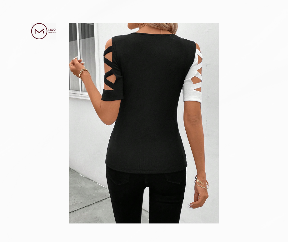 تیشرت زنانه با یقه گرد و ترکیب رنگهای متضاد، از جنس پارچهای با کیفیت ساخته شده که راحتی و دوام را فراهم میکند. جزئیات برشدار در طراحی این تیشرت، به آن ظاهری مدرن و جذاب بخشیده و مناسب برای استفاده در موقعیتهای مختلف روزمره میباشد.