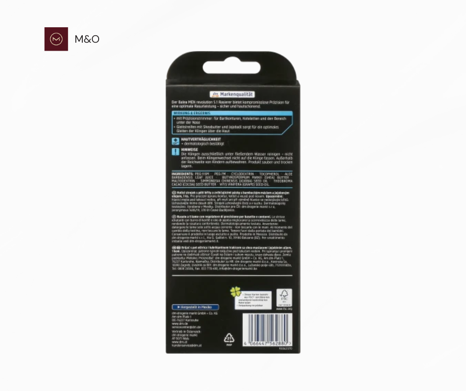 خودتراش Balea MEN Revolution 5.1 با بهرهگیری از سیستم ۵ تیغه، اصلاحی دقیق و بینقص را فراهم میکند. تیغههای با کیفیت بالا بهطور مؤثر موها را قطع کرده و پوستی صاف و تمیز به ارمغان میآورند. تریمر دقیق این خودتراش برای اصلاح خطوط ریش، خط ریش و نواحی دشوار مانند زیر بینی ایدهآل است. نوار لغزنده حاوی شیباتر و روغن جوجوبا باعث میشود تیغهها بهنرمی روی پوست حرکت کرده و از تحریکات پوستی جلوگیری شود.