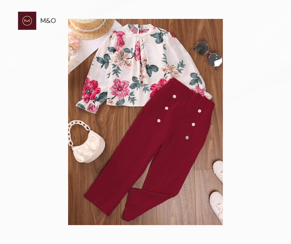 این ست شامل یک بلوز با طرح گلهای زیبا و آستینهای کلوش است که به آن ظاهری شیک و دخترانه میبخشد. شلوار دوبل این ست با طراحی خاص، استایلی مدرن و جذاب را فراهم میکند. این مجموعه برای موقعیتهای مختلف مانند مهمانیها، مراسم خانوادگی یا استفاده روزمره مناسب است و راحتی و زیبایی را همزمان ارائه میدهد.