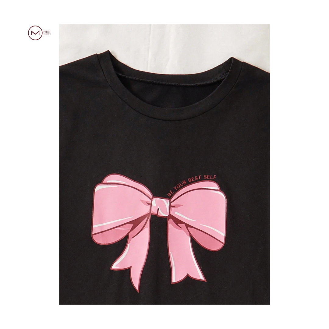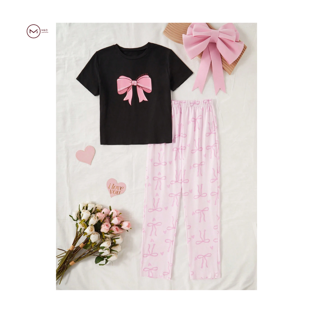 این ست لباس خواب دخترانه یک انتخاب ایدهآل برای استراحت و خواب است که شامل یک تیشرت آستین کوتاه مشکی با چاپ پروانه و یک شلوارک صورتی با طرح پروانههای زیبا میباشد.