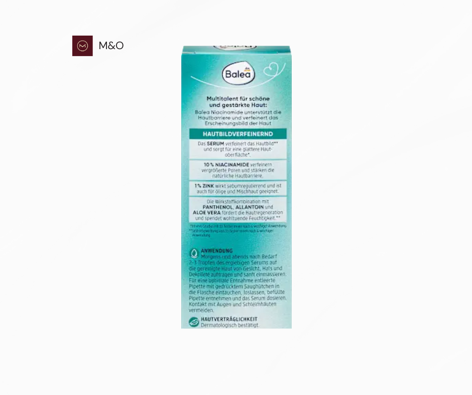 سرم نیاسینامید بالهآ با فرمولاسیون سبک و ژلمانند، حاوی ۱۰٪ نیاسینامید است که به کاهش منافذ باز، یکنواختسازی رنگ پوست و تقویت سد طبیعی آن کمک میکند. همچنین، ۱٪ زینک موجود در این سرم، تولید سبوم را تنظیم کرده و از بروز جوشها و نواقص پوستی جلوگیری میکند. این ترکیب فعال، پوستی صافتر، شفافتر و متعادلتر به ارمغان میآورد.