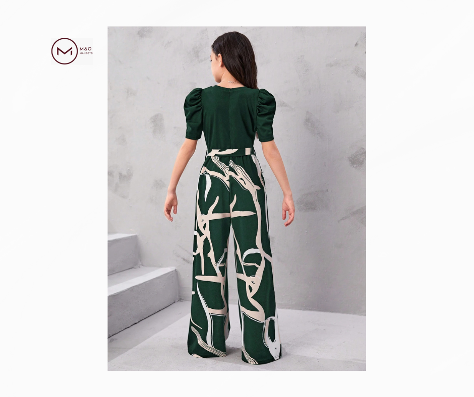 این سرهمی دخترانه با ترکیب رنگهای متنوع و طرحهای هندسی، ظاهری شاداب و جذاب را به ارمغان میآورد. آستینهای کوتاه و شلوارهای پاچهگشاد آن راحتی و آزادی حرکت را فراهم میکنند، که برای فعالیتهای روزمره ایدهآل است.