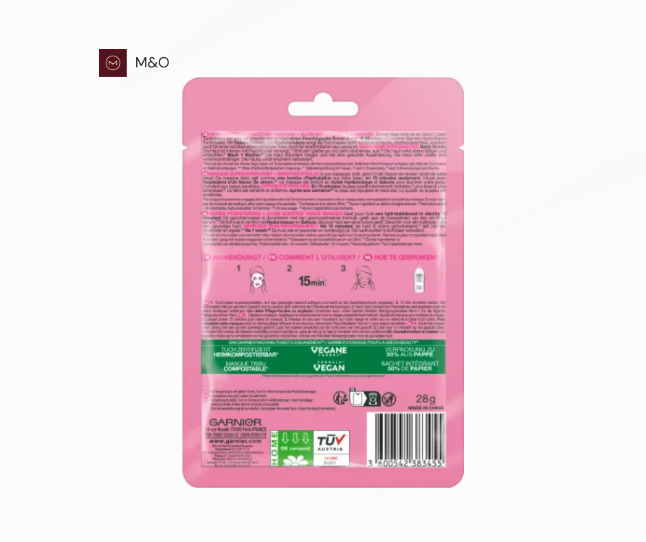 این ماسک ورقهای از جنس الیاف پنبهای، با سرمی غنیشده از عصاره ساکورا (شکوفه گیلاس) و هیالورونیک اسید، بهطور مؤثر به پوست رطوبت میبخشد و آن را تغذیه میکند. هیالورونیک اسید موجود در ماسک، پوست را بهطور عمیق هیدراته کرده و به آن ظاهری صاف و جوان میبخشد. استفاده از این ماسک باعث میشود پوست شما درخشانتر و شادابتر به نظر برسد.