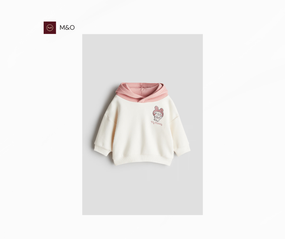 این هودی بخشی از مجموعه H&M x Hello Kitty and Friends است؛ مجموعهای شاد و رنگارنگ با استایلهای راحت، چاپهای زیبا و اکسسوریهای بازیگوشانه. هودی از پارچه سویشرت با داخل نرم و برسخورده ساخته شده و در جلوی آن یک طرح گلدوزی شده وجود دارد. کلاه با آستر جیرسی در رنگ متضاد و جلوی ضربدری طراحی شده و دارای گوشهای برجسته است. شانههای به شدت افتاده، آستینهای بلند و لبههای کشباف از دیگر ویژگیهای این هودی هستند.