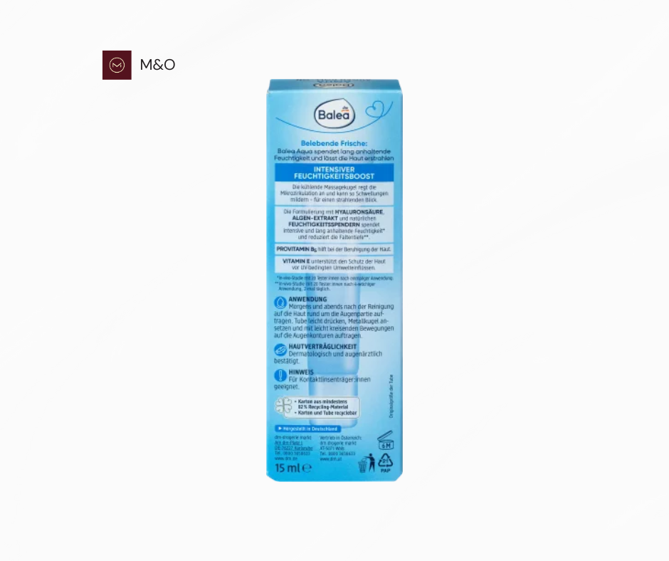 رول-آن دور چشم بالهآ مدل آکوا با فرمولاسیونی حاوی هیالورونیک اسید و عصاره جلبک، رطوبت مورد نیاز پوست حساس دور چشم را تأمین کرده و به کاهش عمق چین و چروکها کمک میکند. توپ فلزی خنککننده این رول-آن، میکروسیرکولاسیون را تحریک کرده و میتواند به کاهش پف و تیرگیهای زیر چشم منجر شود، در نتیجه ظاهری شاداب و درخشان به چشمان شما میبخشد. ویتامین E موجود در این محصول، از پوست در برابر تأثیرات مضر محیطی محافظت میکند.